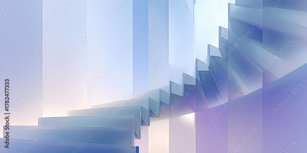 Ascending abstract staircase of light and glass, representing progress, innovation, and future possibilities in a modern, ethereal setting. #1782477333