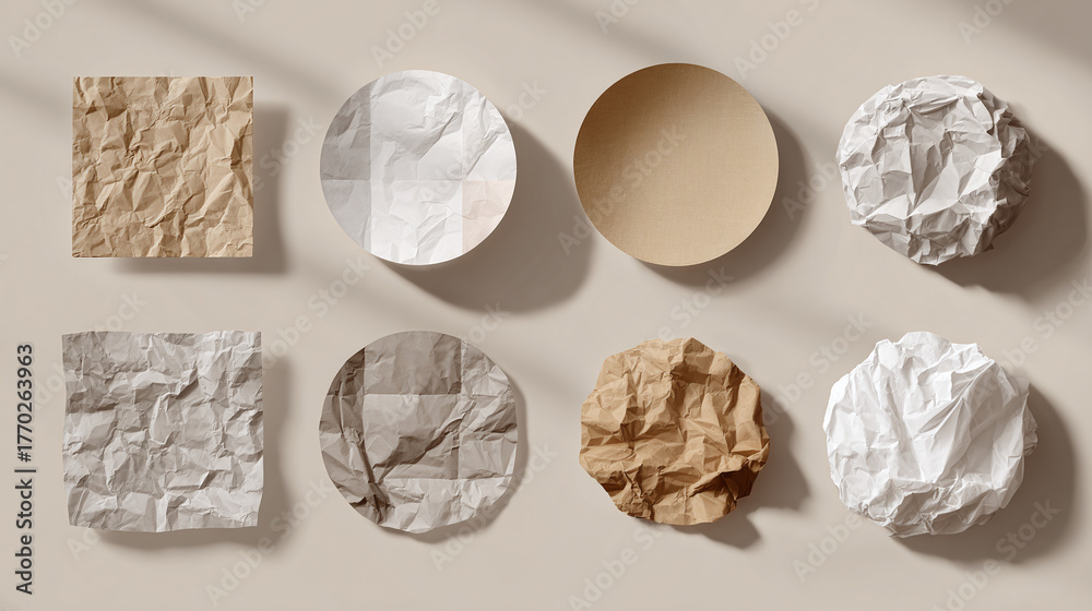 Assortment of crumpled paper of various shapes and colors, creating a visually interesting composition #1770263963