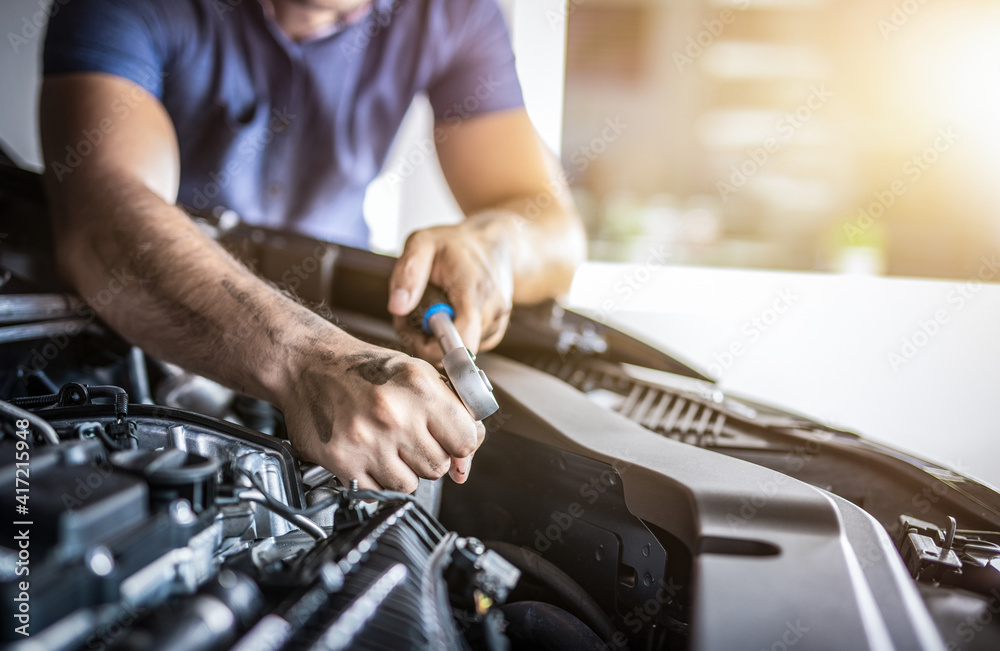 Auto mechanic working and repair on car engine in mechanics garage. Car service. #417215948