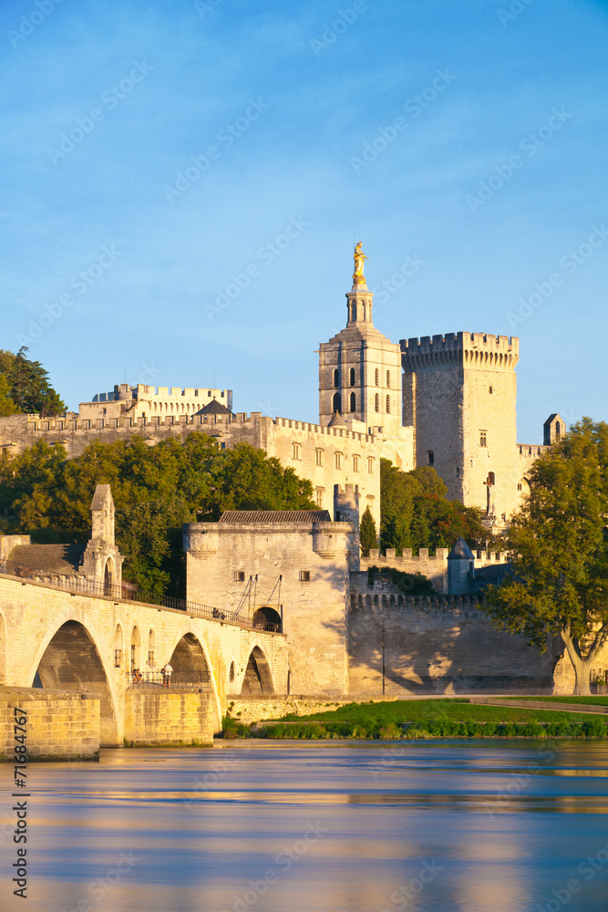 Avignon Bridge with Popes Palace and Rhone river, Provence #71684767
