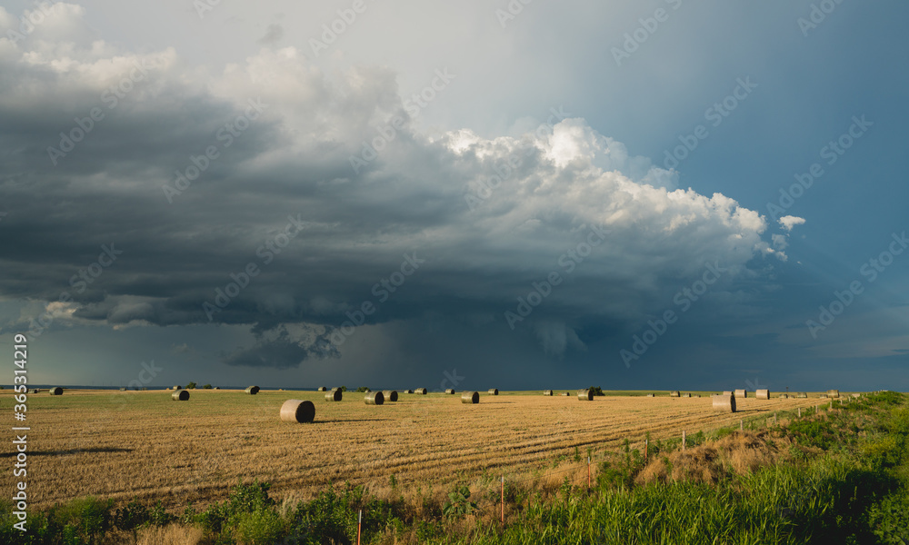 Bales of hay and storm clouds #365314219