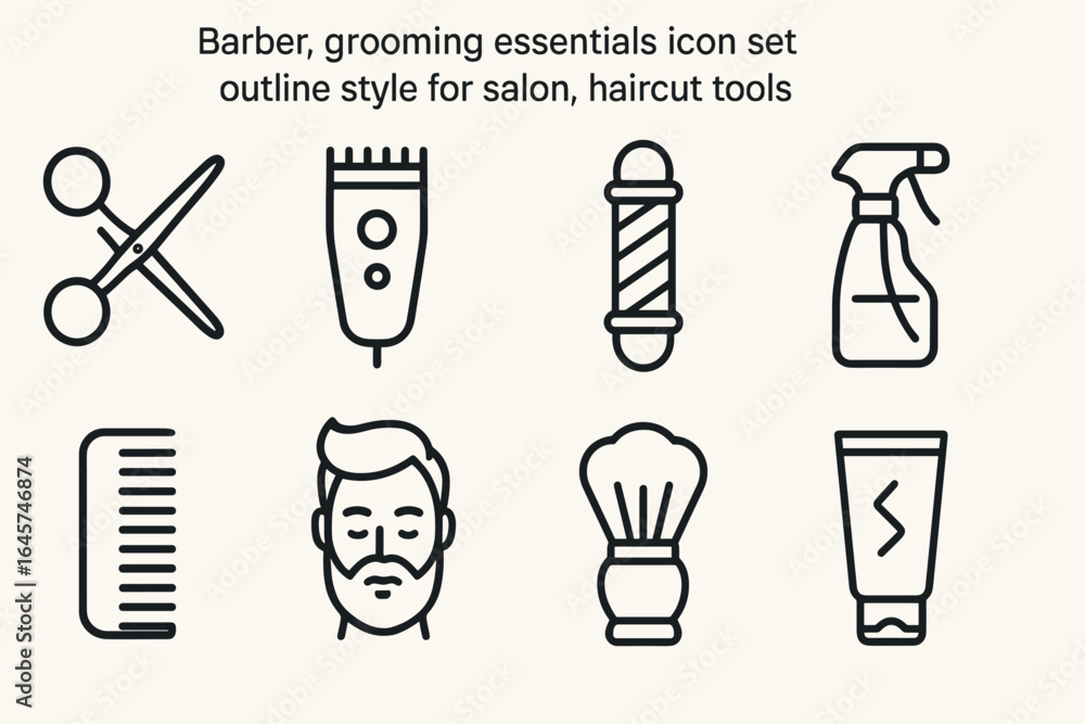 Barber tools icons set – hairdressing equipment, grooming accessories, salon supplies, simple line style #1645746874