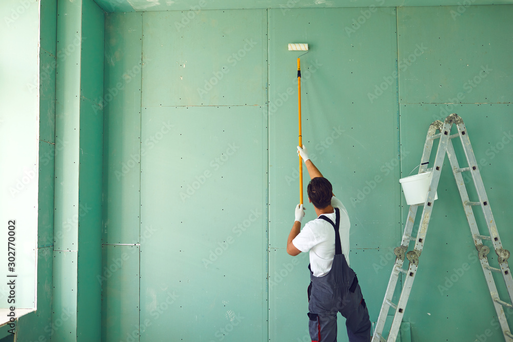 Bearded painter construction worker on a construction site. #302770002