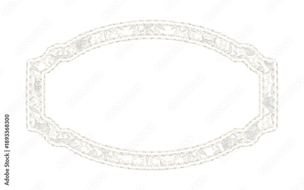 • #1893368300 Beautiful floral lace frame shape, off white color, isolated with transparent background.