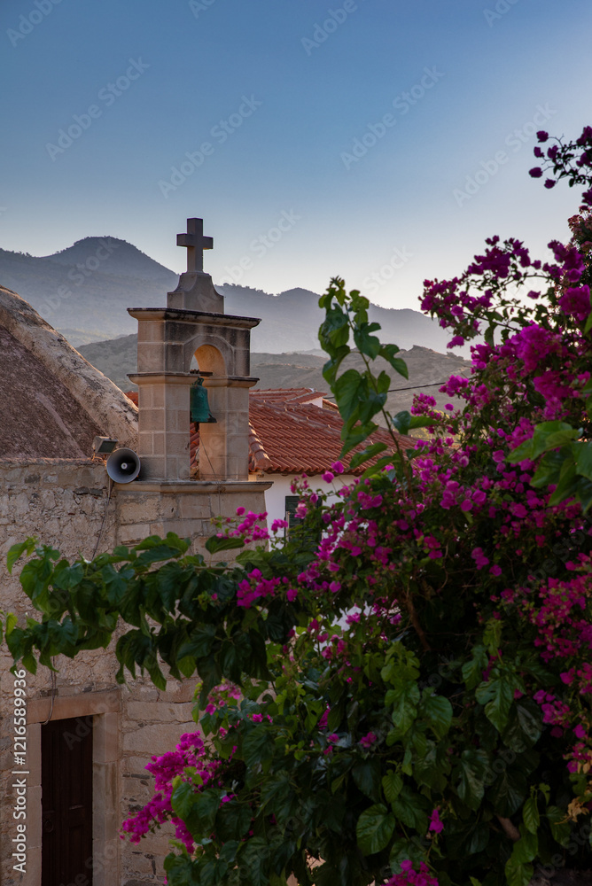 Beautiful streets and local restaurant of village Mirtos, near Ierapetra, Crete, Greece #1216589936