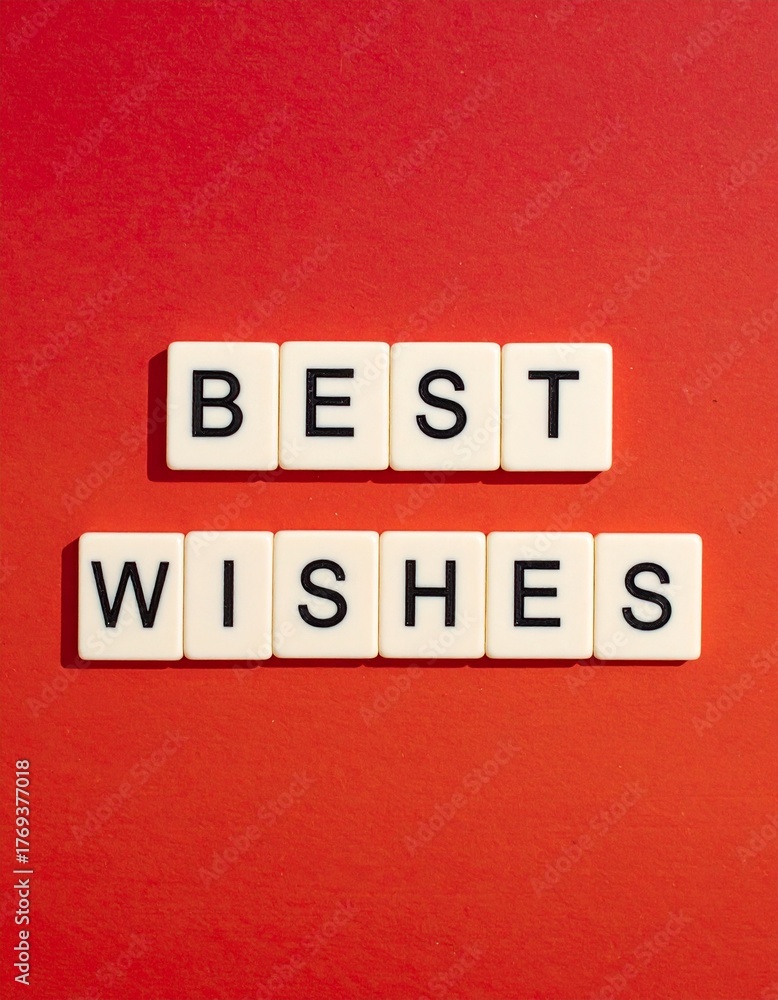 Best wishes text banner letter tiles on vibrant vermilion red background isolated modern simple aesthetics #1769377018