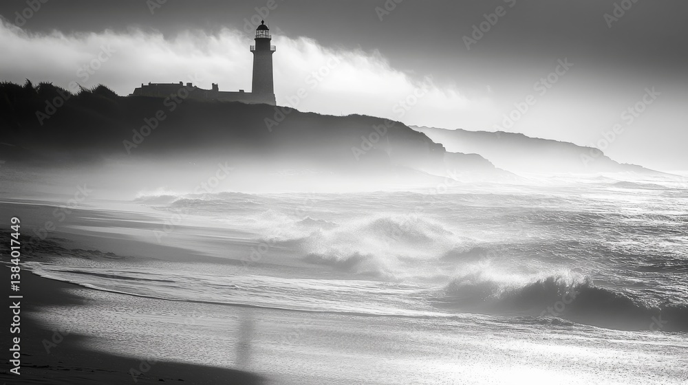 Biarritz beach, France, with lighthouse. #1384017449