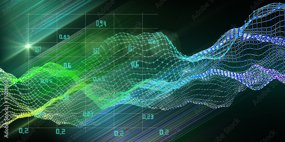 Big data. Abstract algorithm analytical background with grid of data and shine lines. Business concept of artificial intelligence. Quantum virtual cryptography. Analytics algorithms banner. #352096920