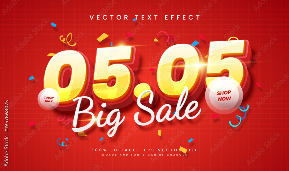 05.05 Big sale 3d editable vector text effect. Modern theme, suitable for promotion product sale. #1957868075