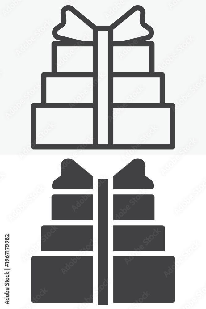 Birthday gift box with ribbon bow icon in line and solid styles. Outline and solid icon, editable stroke vector sign symbol. Birthday gift box icon for party. #1967179982