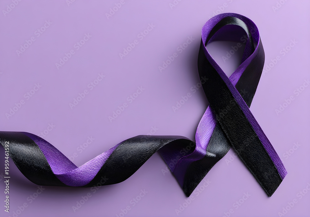 Black and Purple Awareness Ribbon on Soft Background Symbolizing Support and Advocacy #1959461592