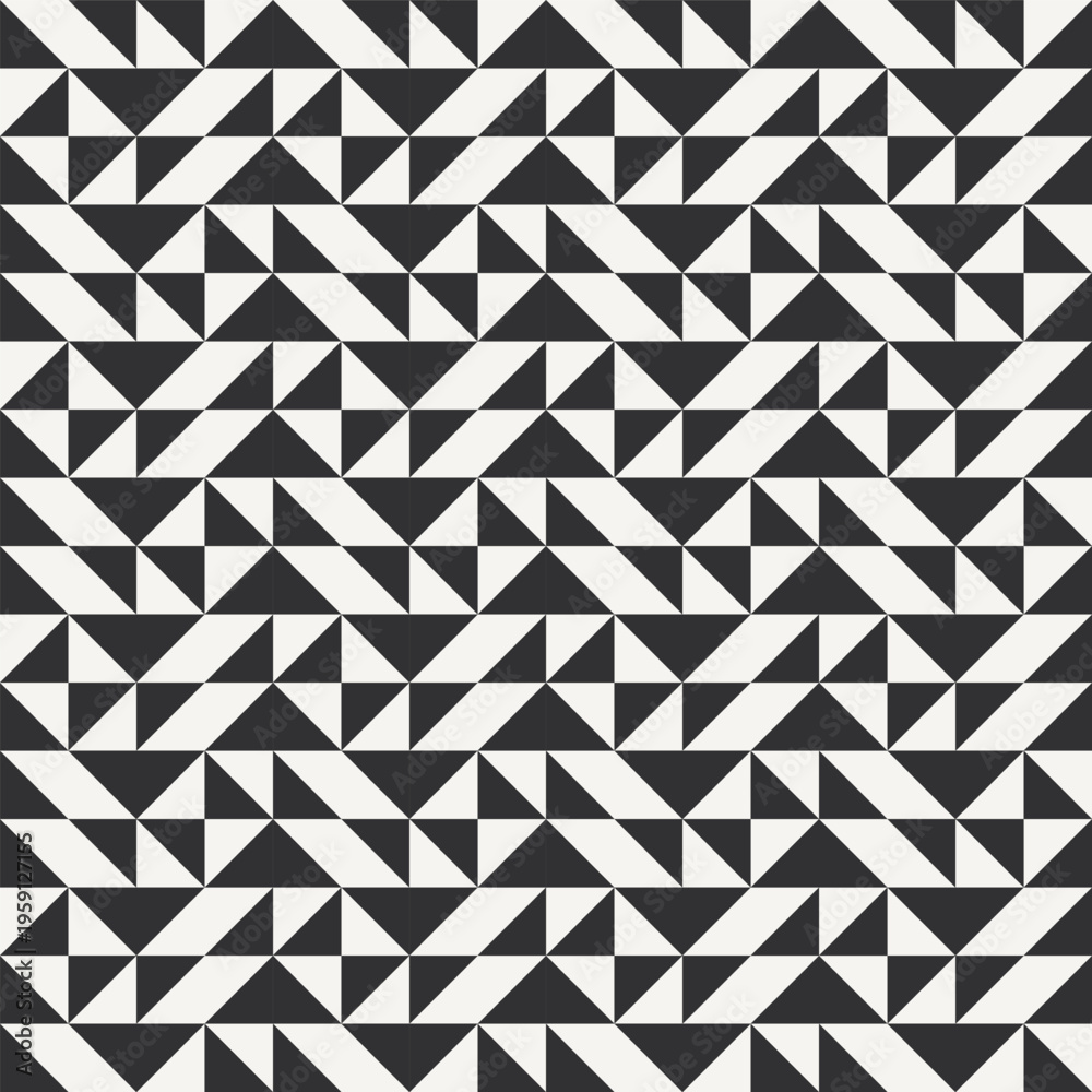 Black and white abstract geometric quilt pattern. High contrast geometric monochrome patchwork minimal background with triangles. Simple colors - easy to recolor. Color block vector illustration. #1959127155