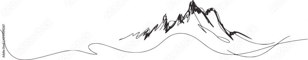 Black and white sketch of jagged mountain peaks and rolling hills drawing #1759090267