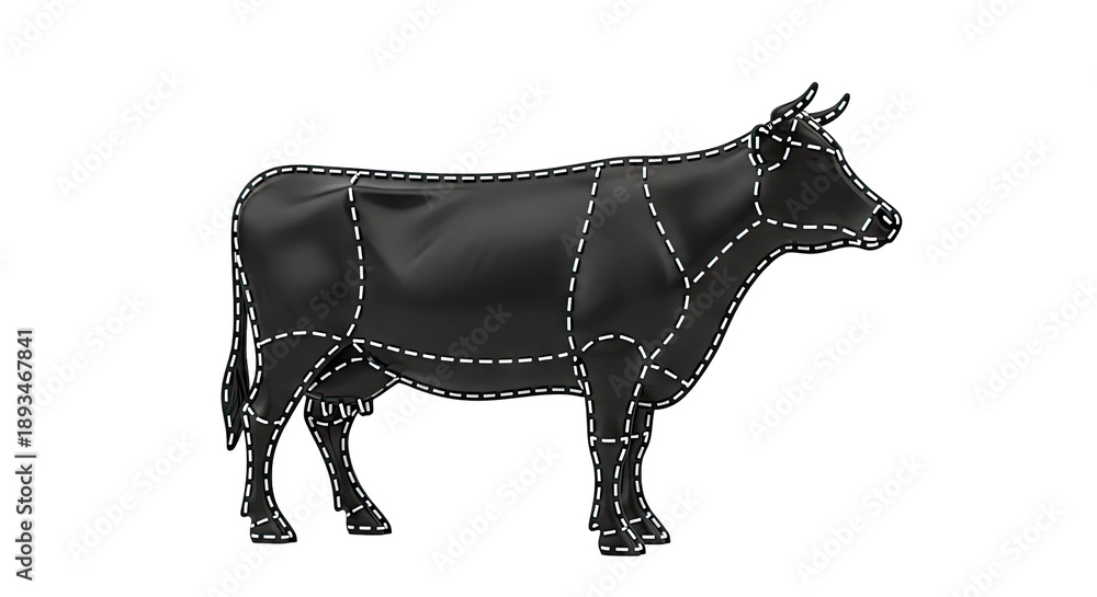 Black Cow Diagram with Cut Lines #1893467841