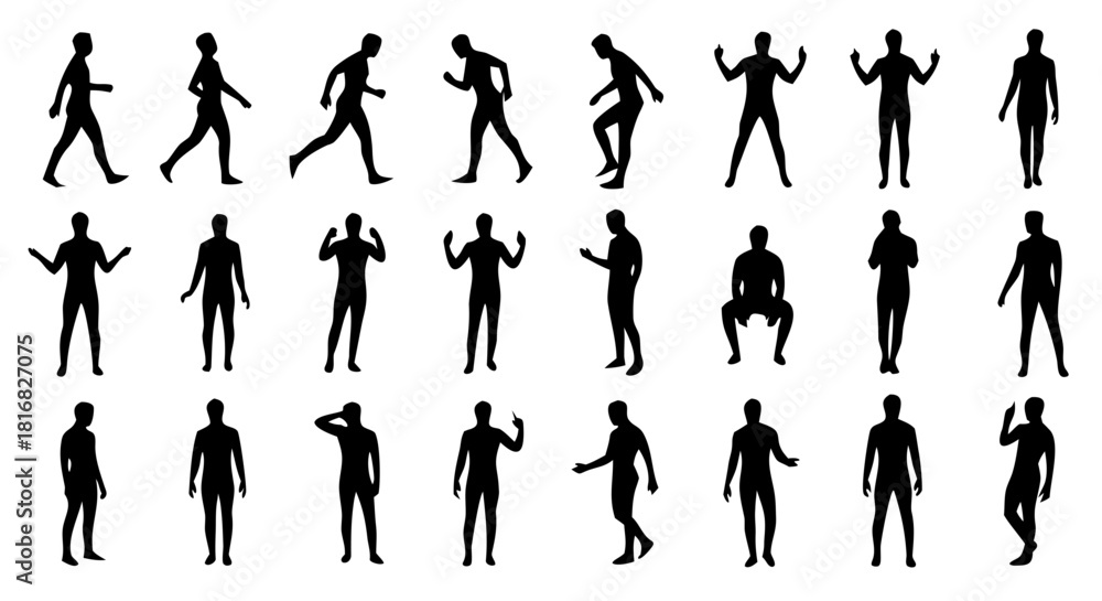 Black Silhouette Man Model Sheet Icon Set – 20 High Quality Vector Designs #1816827075