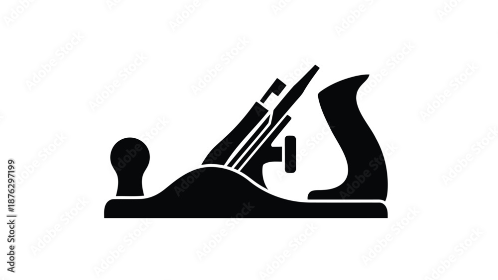 Black silhouette of a wood plane tool on a white background for carpentry and woodworking concepts #1876297199