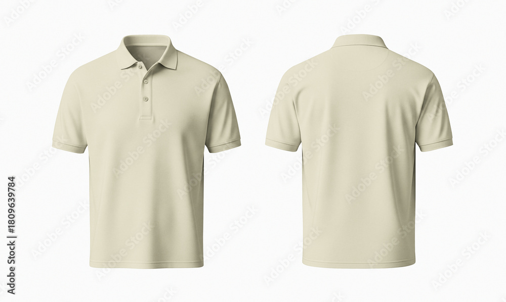 Blank Cream or Beige Polo Shirt Mockup Front and Back on White Background #1809639784