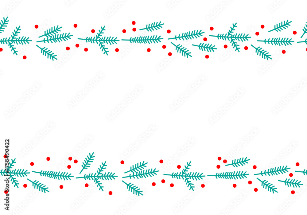 Blank white background with green pine branches for festive holiday backdrop. Seamless Christmas border. Christmas frame with fir branches and place for text #1758490422