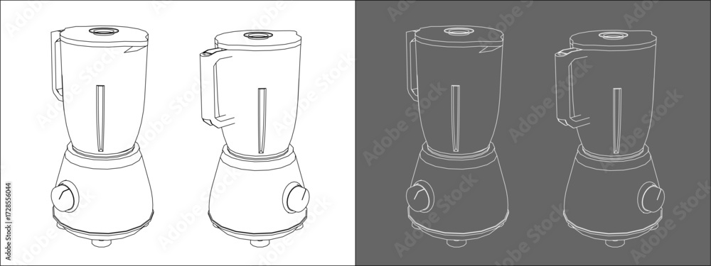 Blender isometric blueprint vector illustration — technical line drawing kitchen appliance isolated #1728556044