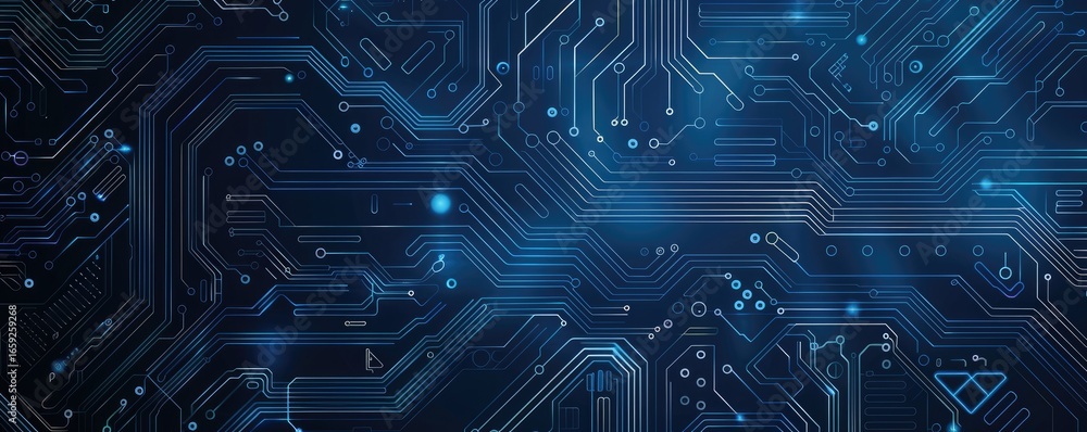 Blue circuit board pattern vector background with tech and digital technology concept for banner, poster or web design element. Vector illustration of blue circuitboard texture #1659259268