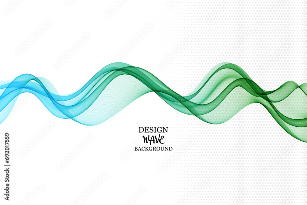 Blue green abstract wave on white background, transparent smooth wave design #692017559