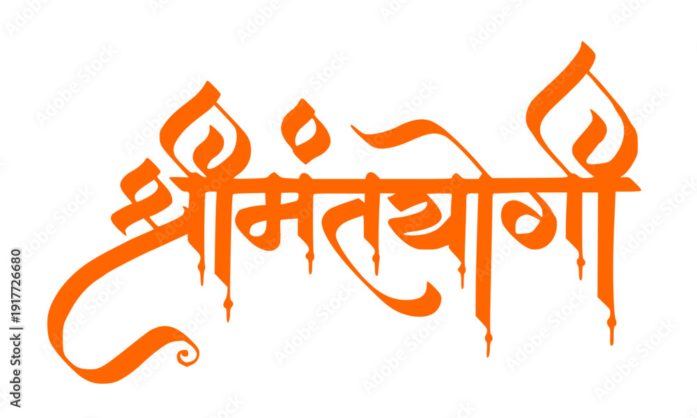 Bold orange decorative Devanagari calligraphy of Shreemant Yogi, a sacred Marathi royal title with stylized dripping flame lettering, perfect for cultural, spiritual, and heritage graphic #1917726680