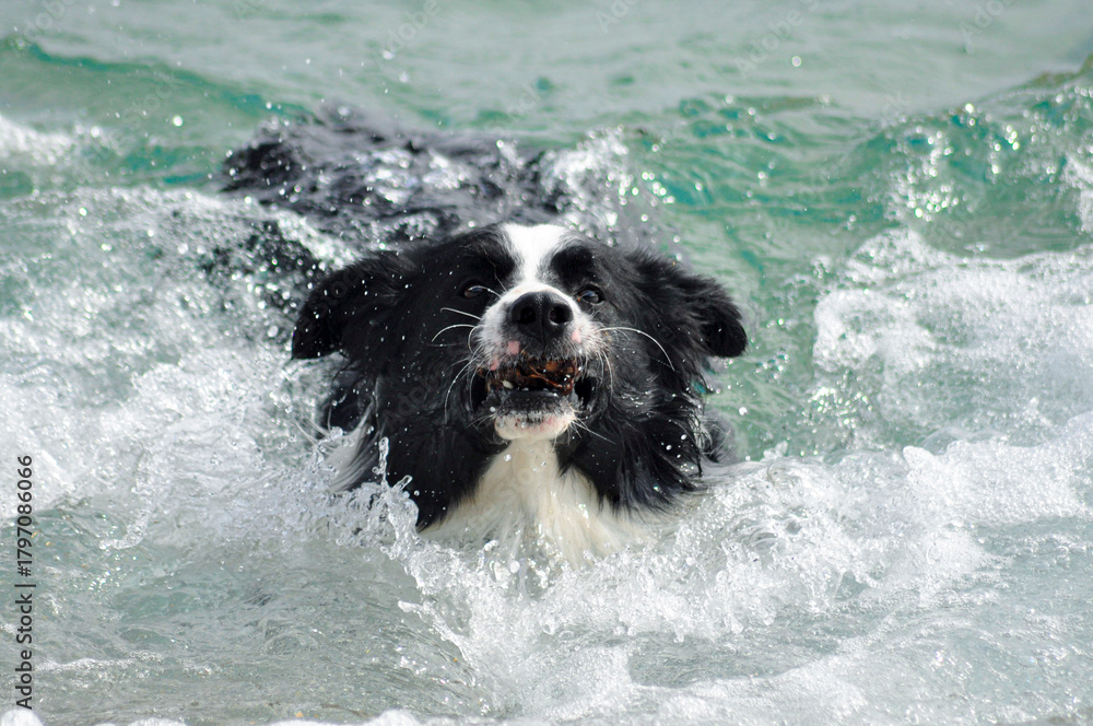 Border collie dog swimming in the sea with its head out of the water #1797086066
