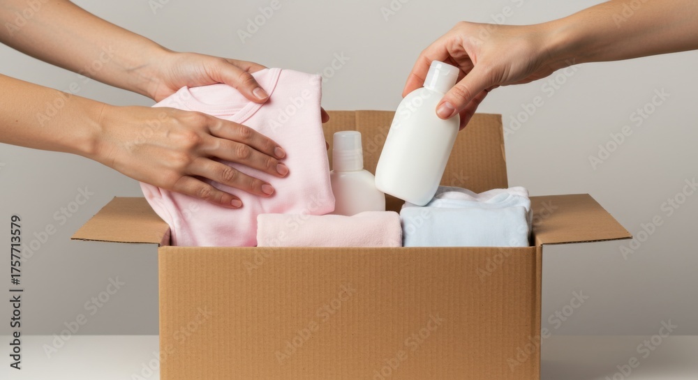Boxing day donation concept with box of clothing and toiletries #1757713579