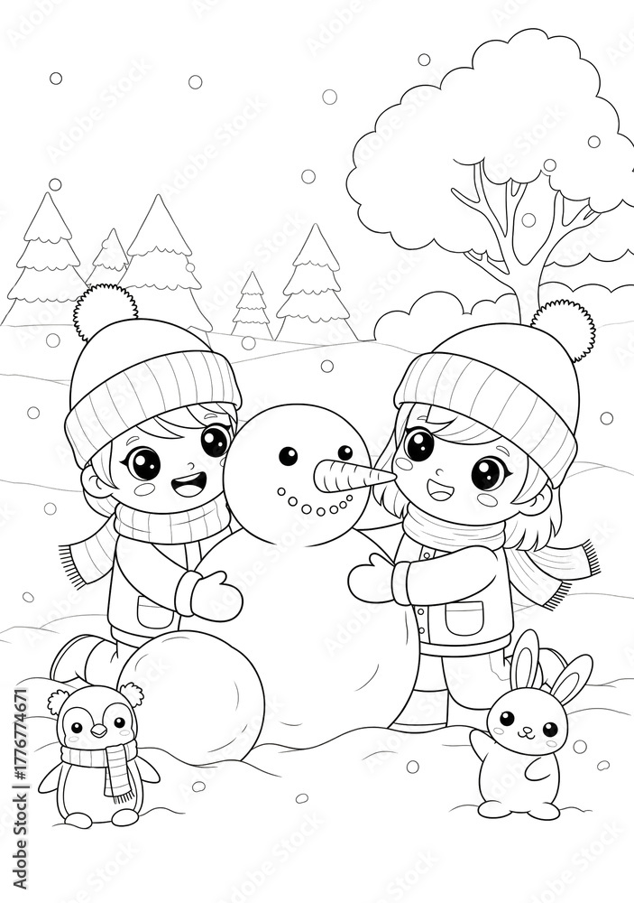 Boy and girl makes Snowman. Festive Winter card #1776774671