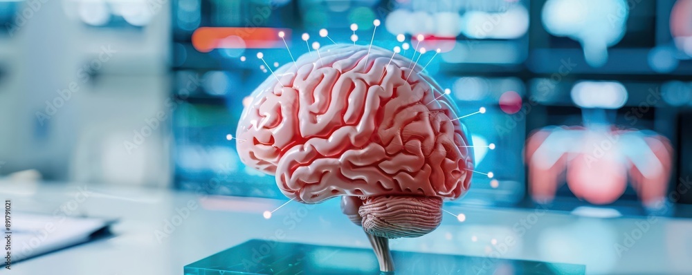 Brain with biotechnology implants, Alzheimer, future-focused innovation #891791021