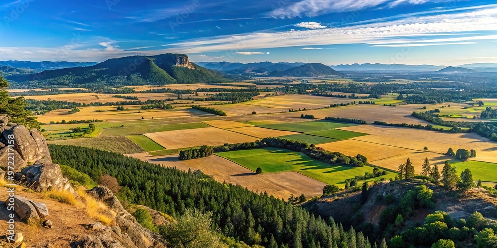 Breathtaking view of Rogue Valley farmland and natural areas from Table Rock in Southern Oregon, USA #972217158