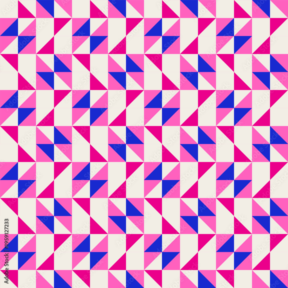 Bright bold vibrant abstract geometric quilt seamless vector pattern, color block. High contrast geometric colorful patchwork background. Pink fuchsia magenta and indigo cobalt blue color combination #1959127233
