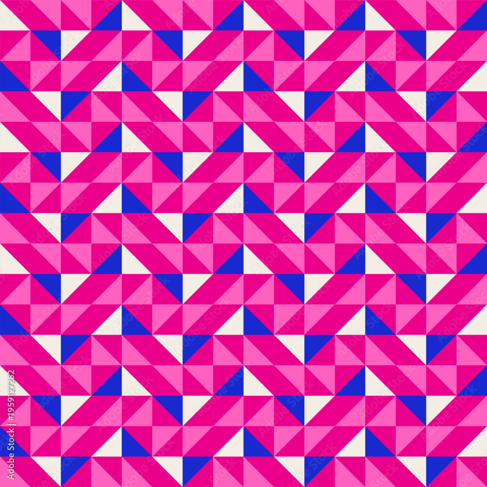 Bright bold vibrant abstract geometric quilt seamless vector pattern, color block. High contrast geometric colorful patchwork background. Pink fuchsia magenta and indigo cobalt blue color combination #1959127252
