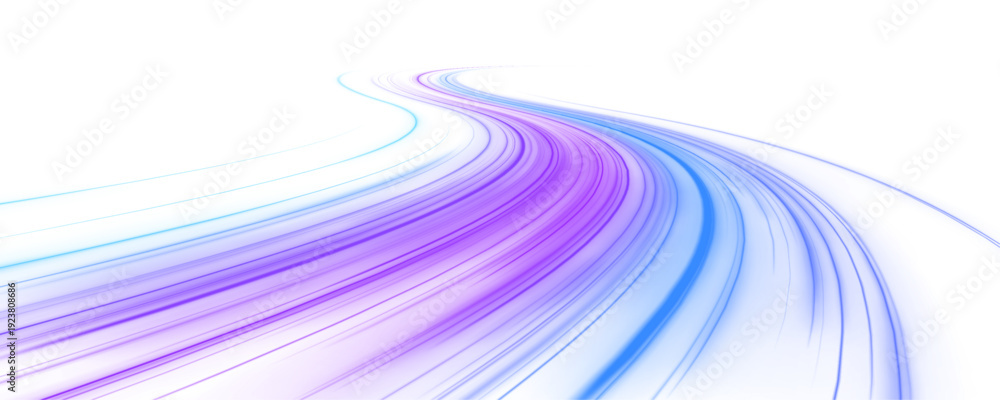 Bright electric blue streaks twist across a dark city skyline, creating a sense of speed and futuristic energy. Perfect for tech designs. PNG #1923808686