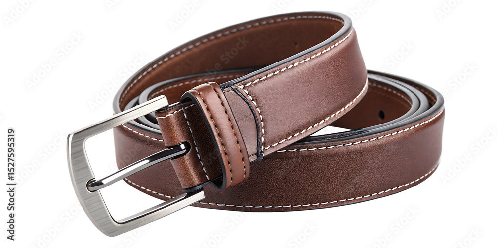 Brown leather belt with silver buckle isolated on a white background png ai generated #1527595319
