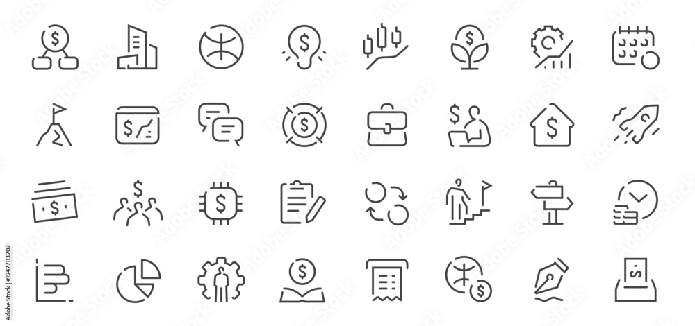 Business and finance line icons set. Analytics, investment, startup, marketing outline vector symbols. Infographics #1942783207