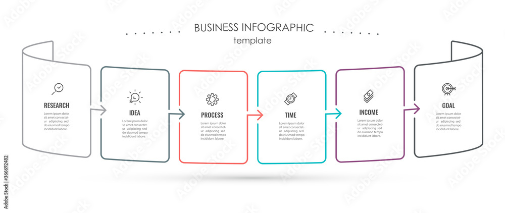 Business Infographic template. Thin line design with icons and 6 options or steps. #366692482