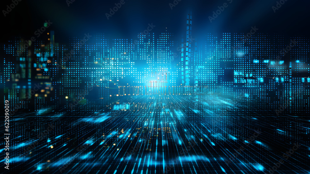Business inteligence technology abstract background. Binary code algorithms deep learning. #622090019
