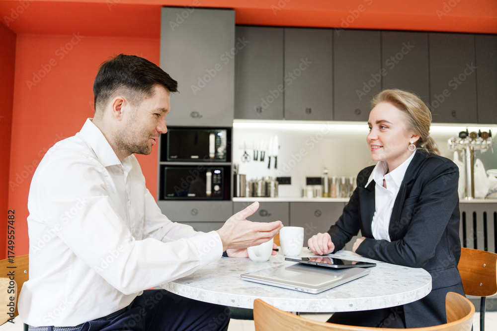 Business meeting between two professionals in a modern office space #1749557482