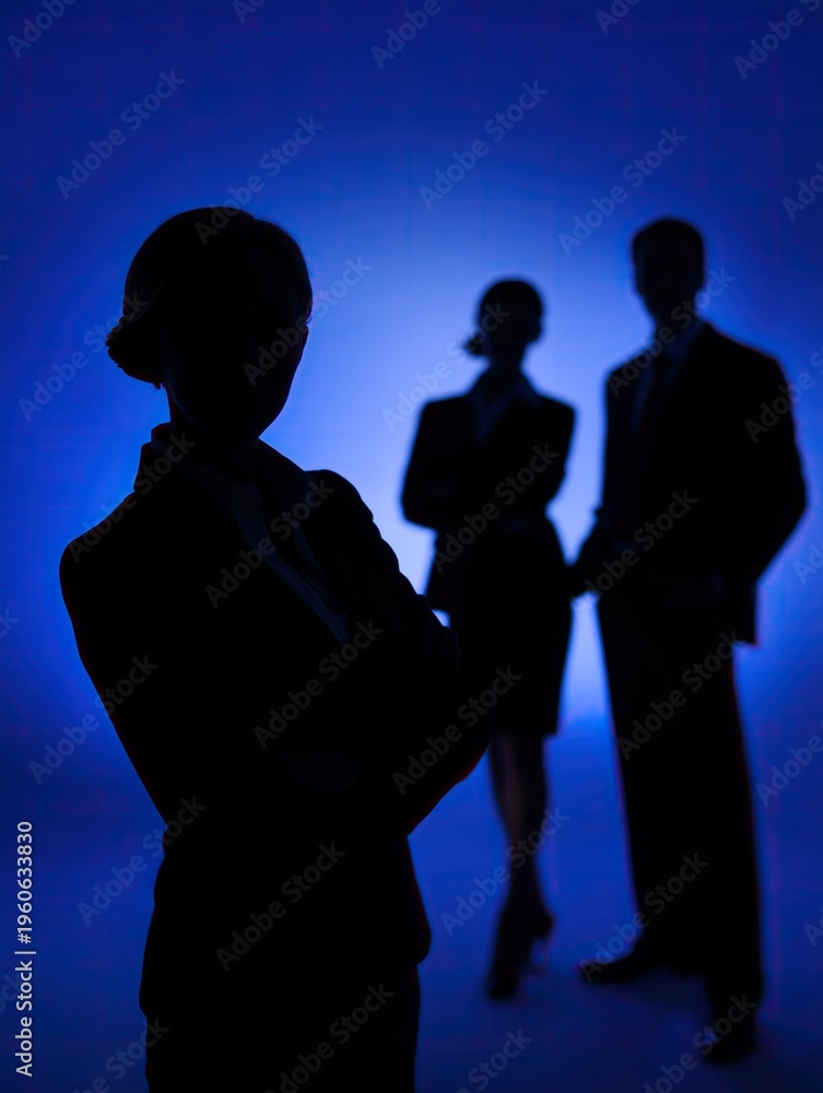 Business people in blue light environment with modern corporate atmosphere. #1960633830