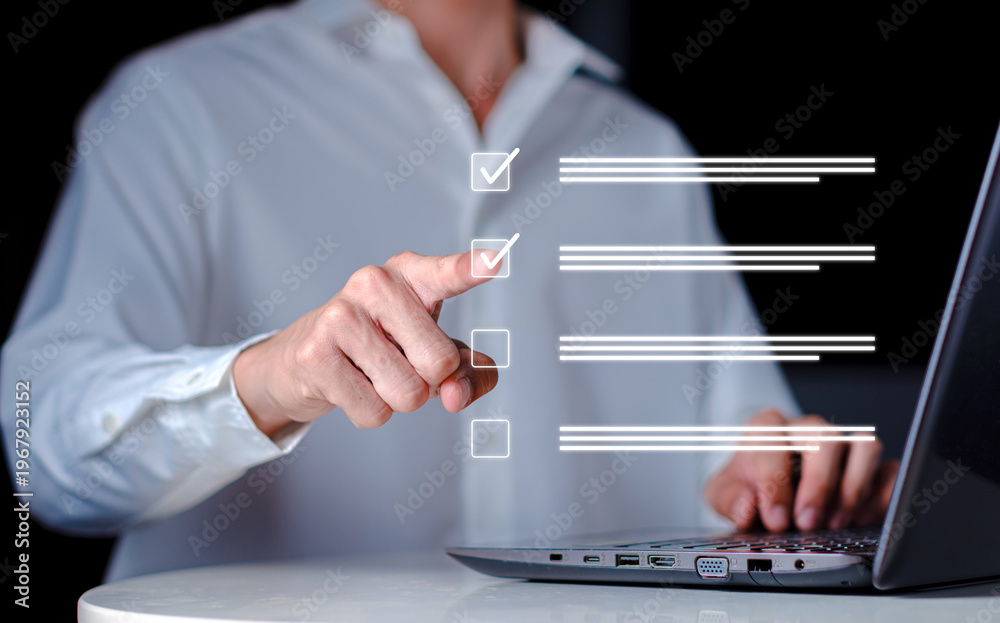 Business professional completing checklist financial representing audit, data verification, accounting process and task management. Accuracy compliance and workflow #1967923152