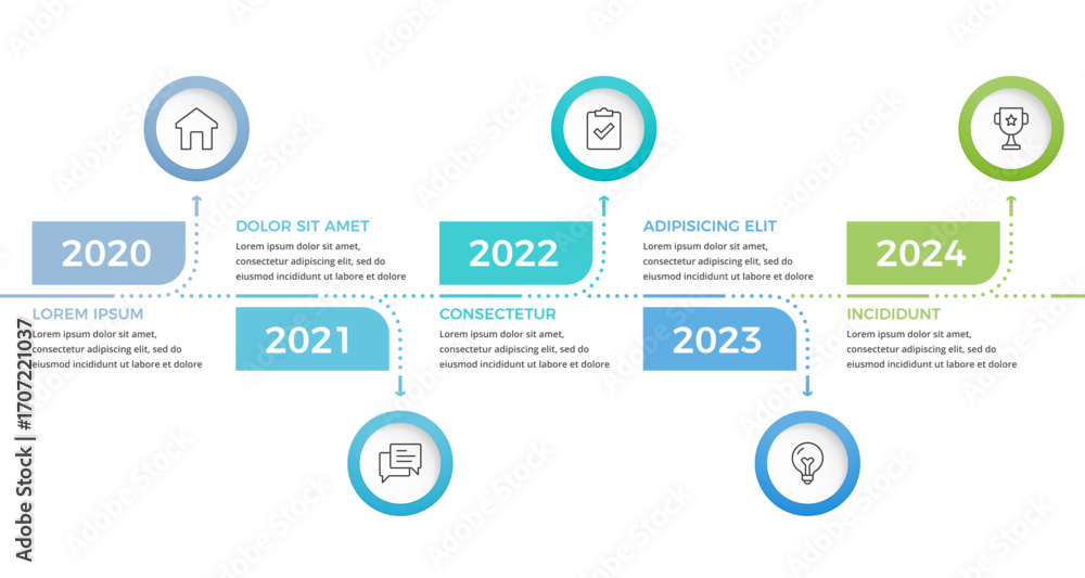 Business timeline infographic with circular icons with 5 elements #1707221037