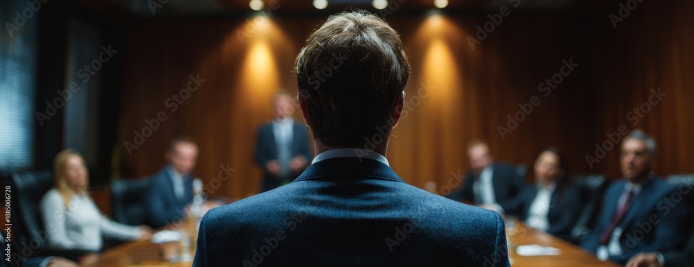 Businessman presenting to his team in a boardroom during meeting #1885086728