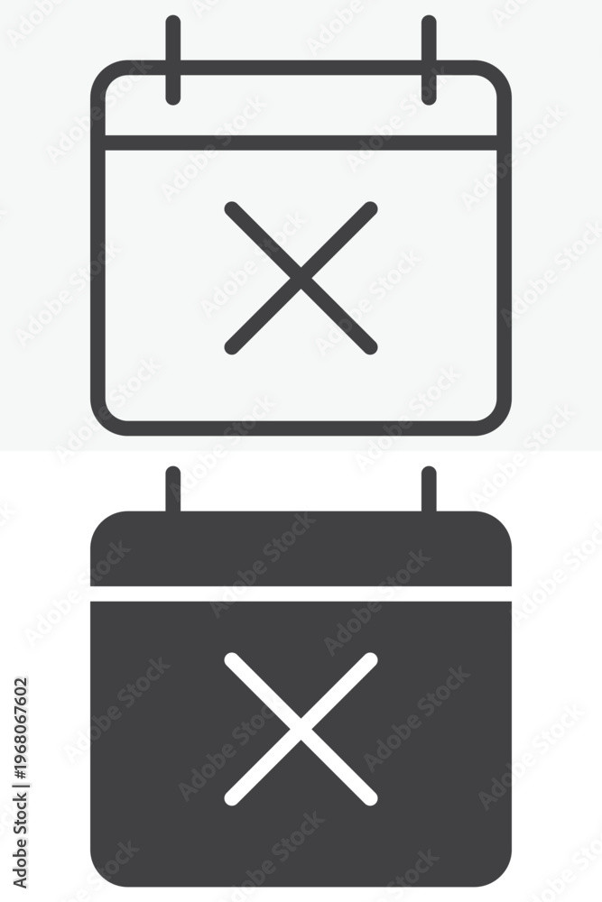 Calendar Cancel Date icon in line, outline and solid style. Editable stroke vector sign and symbol set for time use, with calendar cancel date icon in simple versions. #1968067602