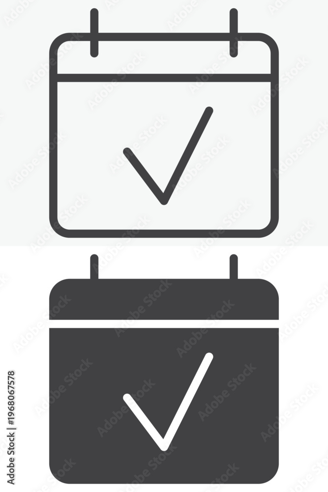 Calendar Check Date icon in line, outline and solid style. Editable stroke vector sign and symbol set for time use, with calendar check date icon in simple versions. #1968067578