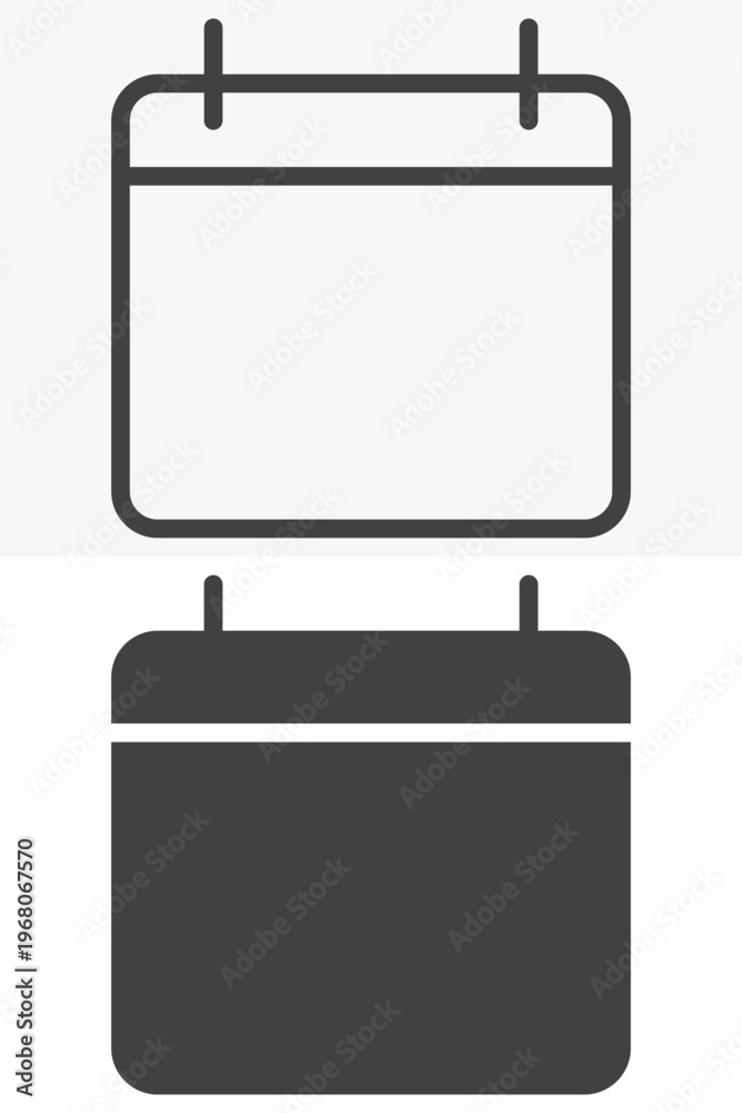 Calendar icon in line, outline and solid style. Editable stroke vector sign and symbol set for time use, with calendar icon in simple versions. #1968067570