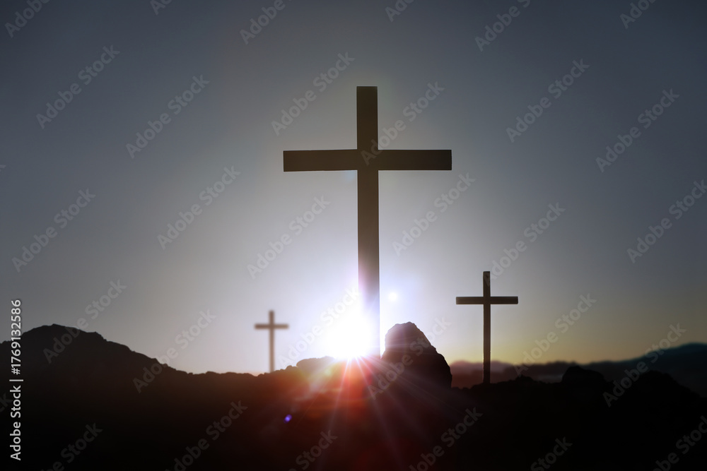 Calvary Hill, the cross symbolizing the death and resurrection of Jesus Christ, Holy Week background #1769132586
