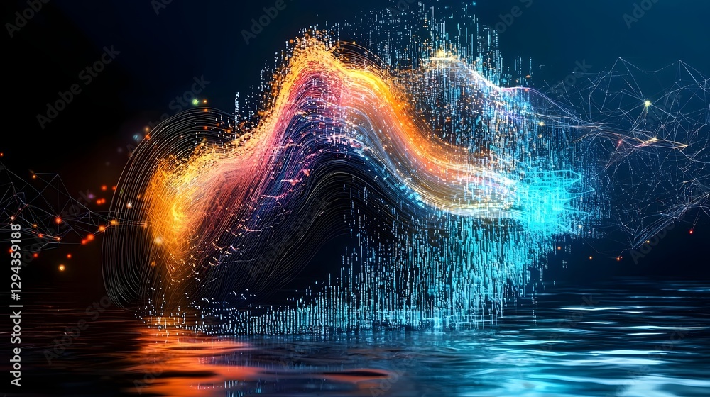 Captivating digital artwork showcasing a futuristic cybernetic data visualization with a neon infused dynamically shifting machine learning interface that analyzes massive data sets in real time #1294359188
