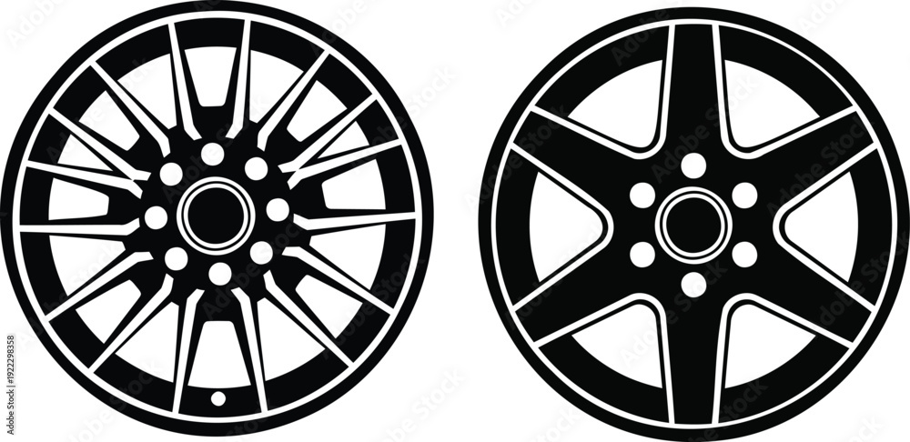 Car alloy wheels rims design set vector illustration for automotive transportation and vehicle parts #1922298358