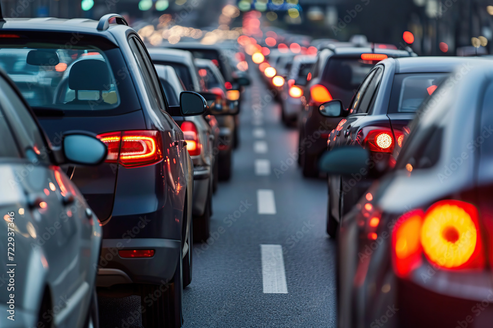 Cars stuck in traffic jam on a highway #722937346